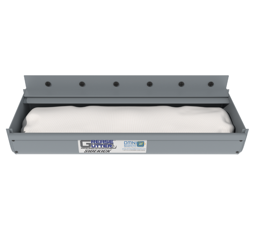 The Grease Gutter Sidekick™ features a single-sided design, perfect for applications where other Grease Gutter units won't fit. With a compact width of just four inches, it includes an easy-to-replace filter. Proudly made in the USA with UL-approved materials, this versatile grease containment system is both economical to purchase and maintain.