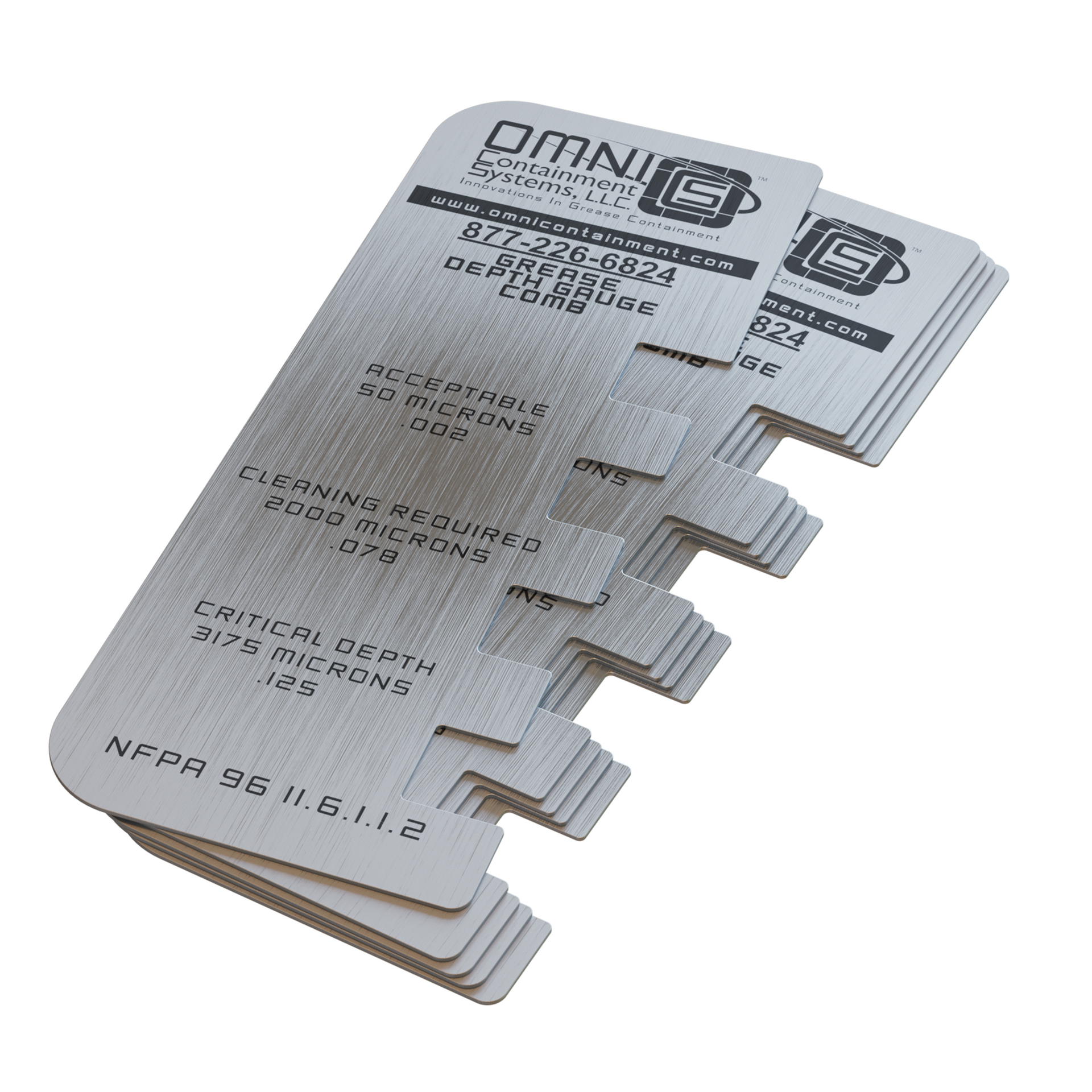 The Omni Containment Stainless Steel Grease Depth Gauge Comb is the perfect tool for accurately determining grease levels in exhaust systems. Designed for durability, this comb allows kitchen exhaust system inspectors to measure grease buildup in the exhaust duct without the risk of snapping, unlike traditional combs.