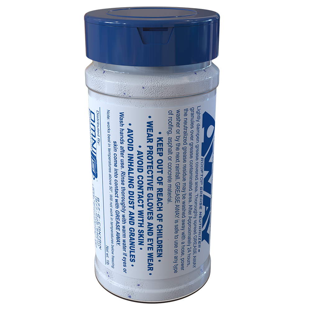 is far more effective on wet grease so it is a good idea to check the roof or other surface that could collect grease periodically and catch grease spills while they are fresh, such as applying Grease Away
