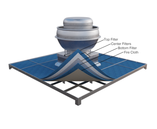 - The 4th layer, the same material as the top layer, keeps grease-saturated filters off the roof