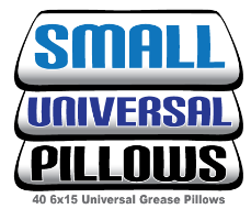 Small Universal Pillows are designed to fit seamlessly into factory exhaust fan drip trays. Made from recycled hydrophobic materials and biodegradable grease neutralizers, they retain grease while allowing water to pass through. These pillows can hold up to 8 times their weight in grease, providing an economical and effective solution without the need to change your existing grease containment system.